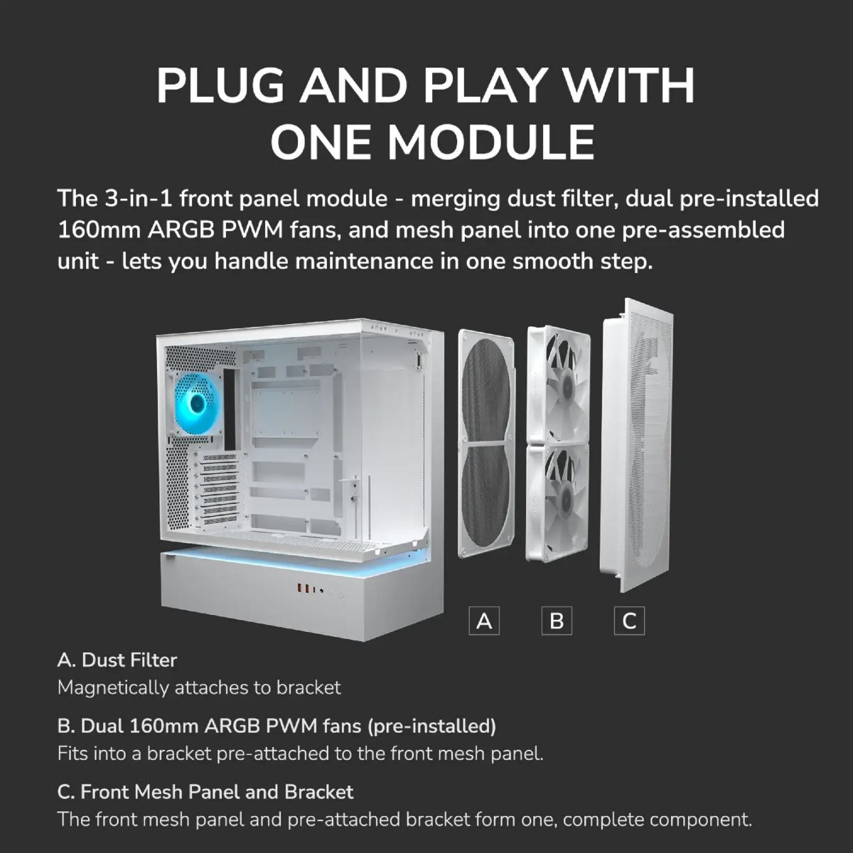 | Sistema de Refriger. | Pre-installed Fans 160mm ARGB PWM fan x 2 120mm ARGB PWM fan x 1 |