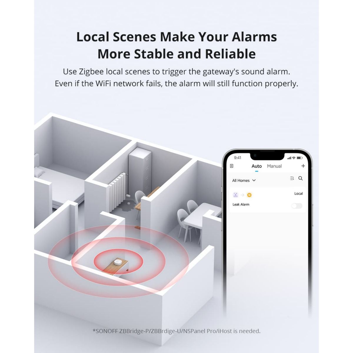 Protege tu hogar con el Sensor de Fugas de Agua Sonoff SNZB-05P Zigbee. Detecta instantáneamente derrames y fugas, enviando alertas a tu móvil a través de la app eWeLink. Su diseño impermeable IP67 garantiza durabilidad. Compatible con Amazon Alexa, Google Home y SmartThings (requiere Hub Zigbee), este sensor inteligente es esencial para prevenir daños por agua en cualquier estancia.
