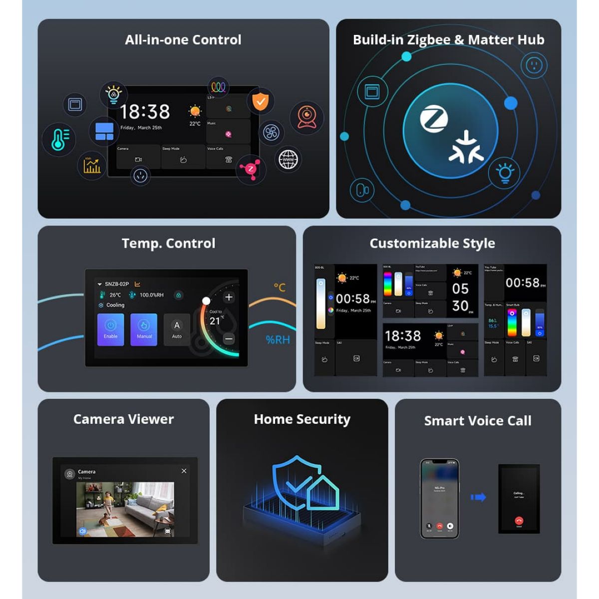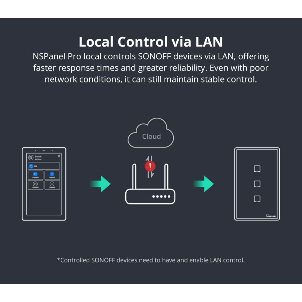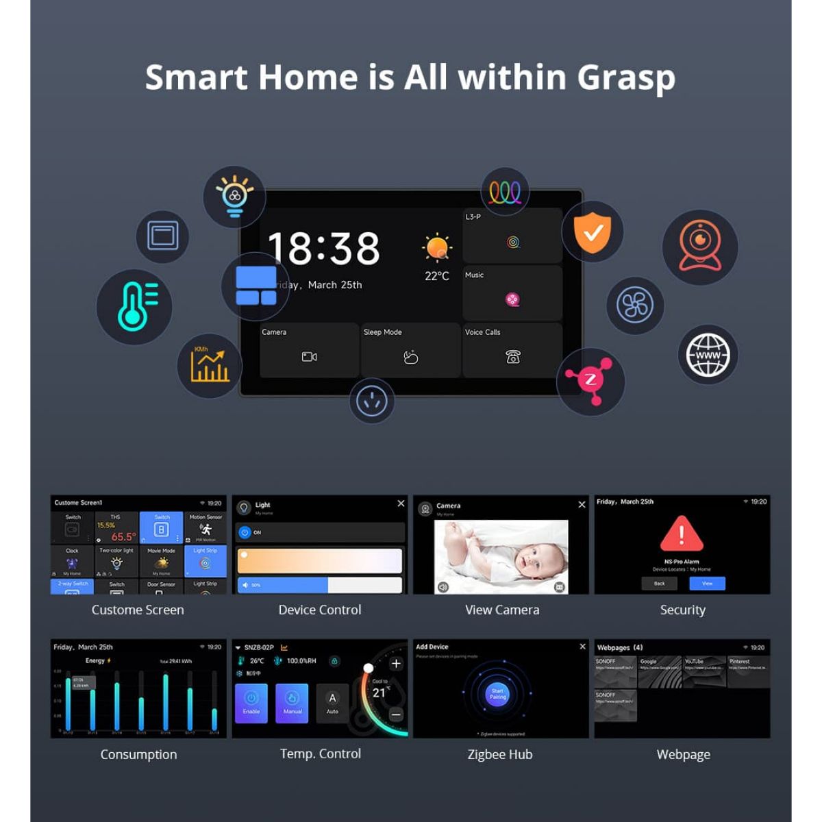 Transforma tu hogar con el Sonoff NSPanel Pro, un panel de control inteligente 4 en 1 para domótica. Disfruta de una pantalla táctil intuitiva, hub Zigbee 3.0 integrado, control por voz con Alexa y Google Home, y compatibilidad con Matter. Gestiona luces, termostatos y seguridad, visualiza cámaras Sonoff y monitoriza temperatura/humedad. ¡Simplifica tu vida inteligente!