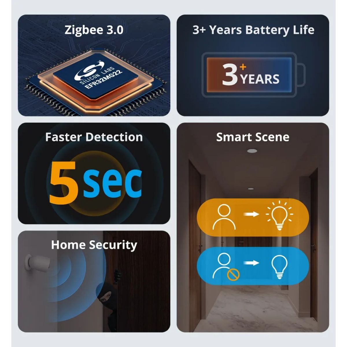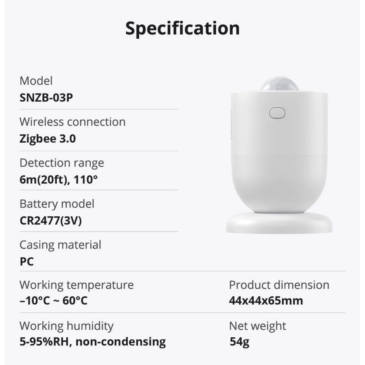 Transforma tu hogar en un espacio inteligente con el Sensor de Movimiento Sonoff Zigbee SNZB-03P. Este dispositivo compacto detecta presencia y movimiento con alta precisión, activando automatizaciones en tu sistema de domótica. Ideal para seguridad, ahorro energético y confort, se integra fácilmente con tu eWeLink Zigbee Bridge y es compatible con Alexa y Google Home. Disfruta de una vida más conectada y segura.