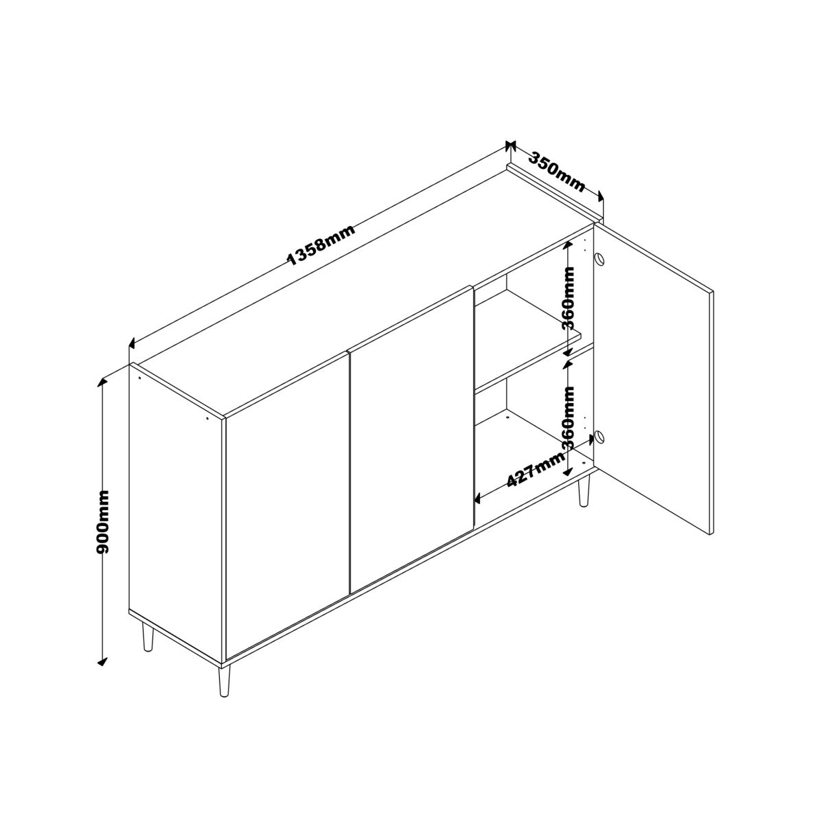 Aparador Argos, es una pieza funcional de estilo minimalista. Perfecta para guardado de vajilla, mantelería o cualquier cosa que quieras tener a mano pero no tan visible en la sala o comedor. Con 3 puertas, estante intermedio en cada una de ellas y gran capacidad de guardado.