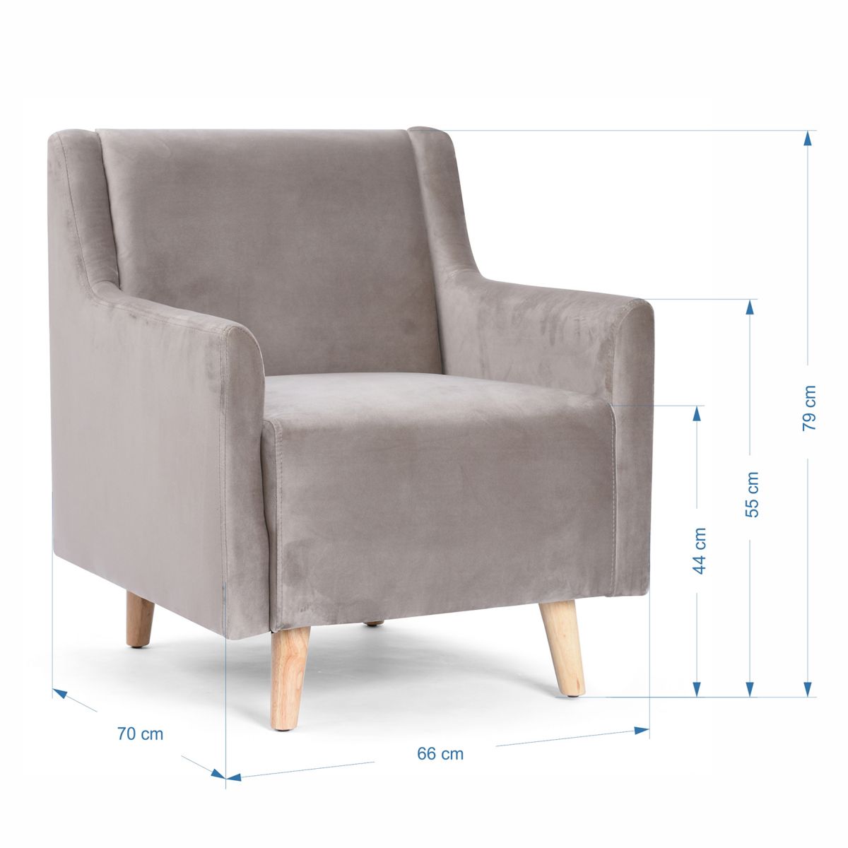 70*66 cm /Respaldo H=79 cm / Posabrazos H=55 cm / Asiento H= 45cm