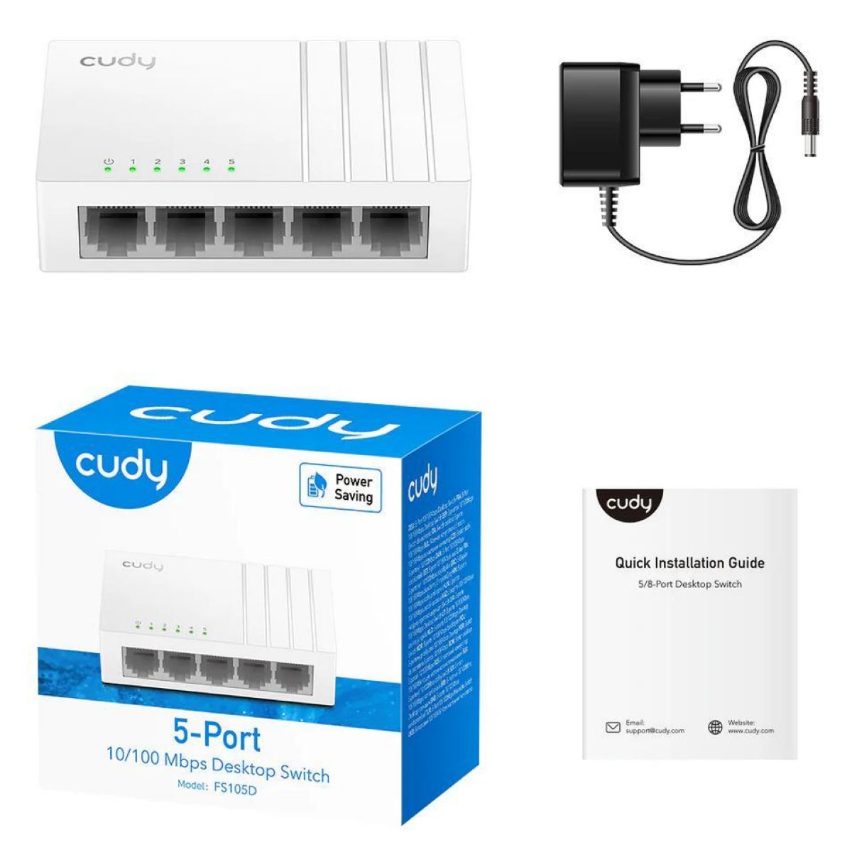 El Switch Cudy de 5 puertos 10/100 Mbps FS105D 3.0 es la opción perfecta para quienes buscan una expansión sencilla y eficiente de su red en entornos pequeños o medianos, con una instalación fácil y bajo consumo energético.