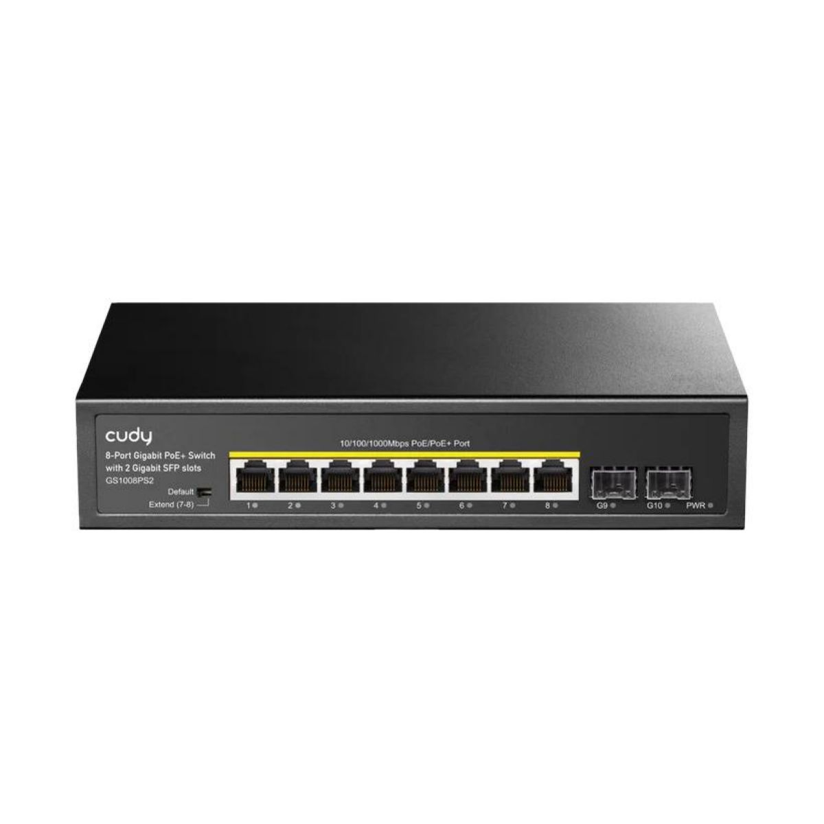 Cantidad de puertos | 8 puertos gigabit PoE+ 2 puertos Uplink SFP |