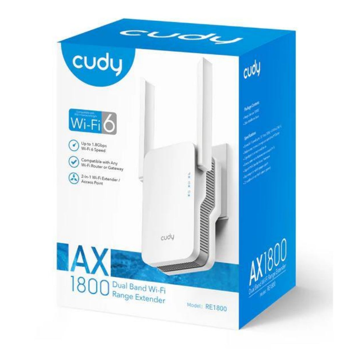 El Extensor de Rango de Wi-Fi 6 en Malla AX1800 Cudy RE1800 2.0 es una excelente opción para quienes buscan mejorar la cobertura y la velocidad de su red Wi-Fi existente. Con soporte para Wi-Fi 6, un puerto Ethernet Gigabit y la facilidad de configuración mediante WPS, este dispositivo es ideal para hogares u oficinas que requieren conexiones rápidas y confiables.