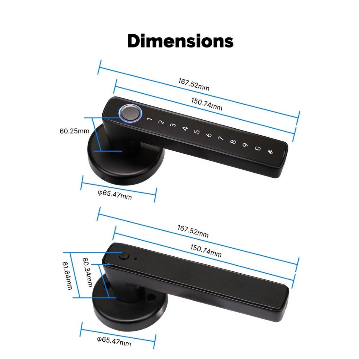 Métodos Desbloqueo | Huella dactilar, Tarjeta RFID, Código PIN, Llave mecánica, Bluetooth APP |