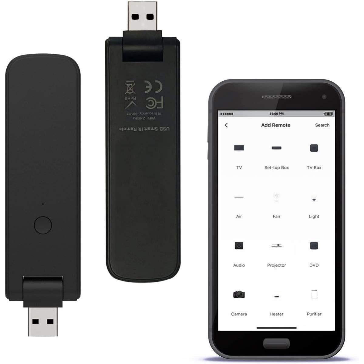 Mini controlador IR inteligente: Controlador portátil y giratorio que no requiere cable de alimentación adicional ni accesorios extra. Se conecta fácilmente a cualquier puerto USB o panel USB.