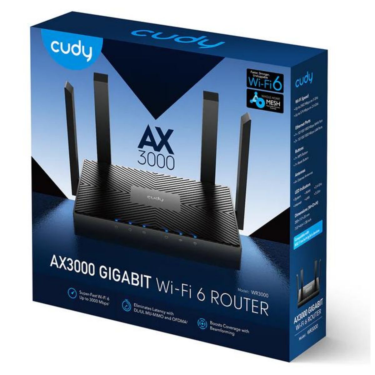 Velocidad WIFI | AX3000 2402 Mbps (5 GHz), 574 Mbps (2.4 GHz) |