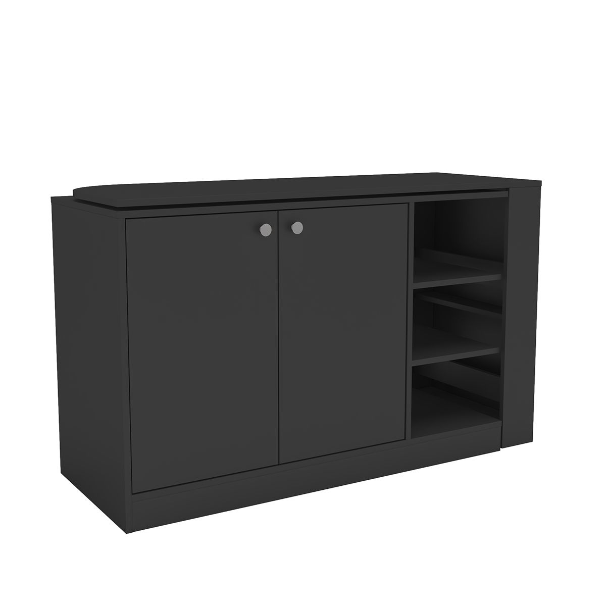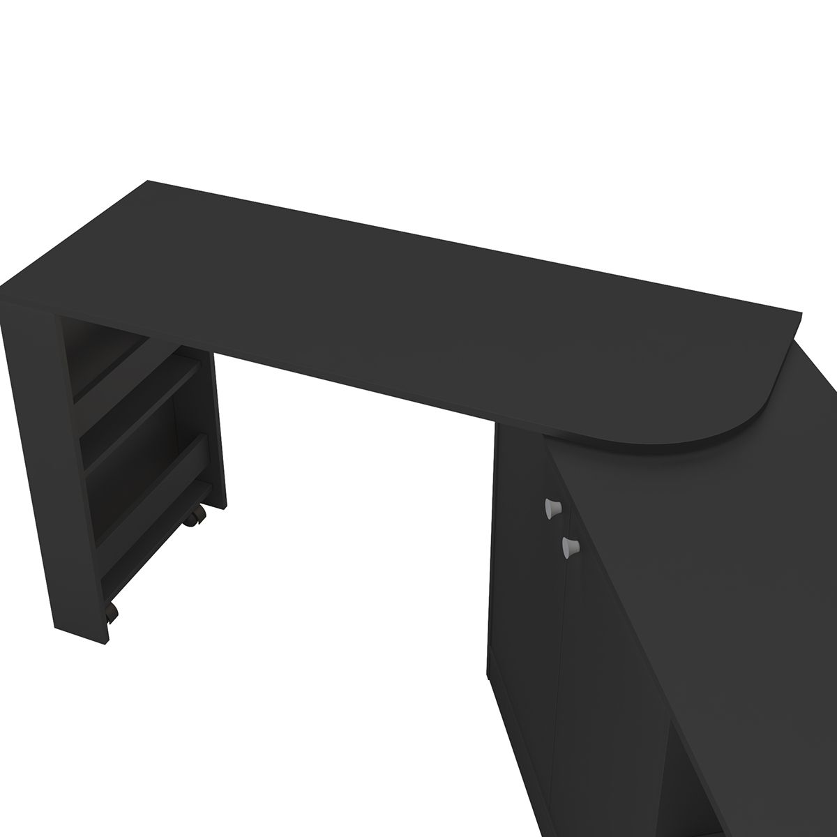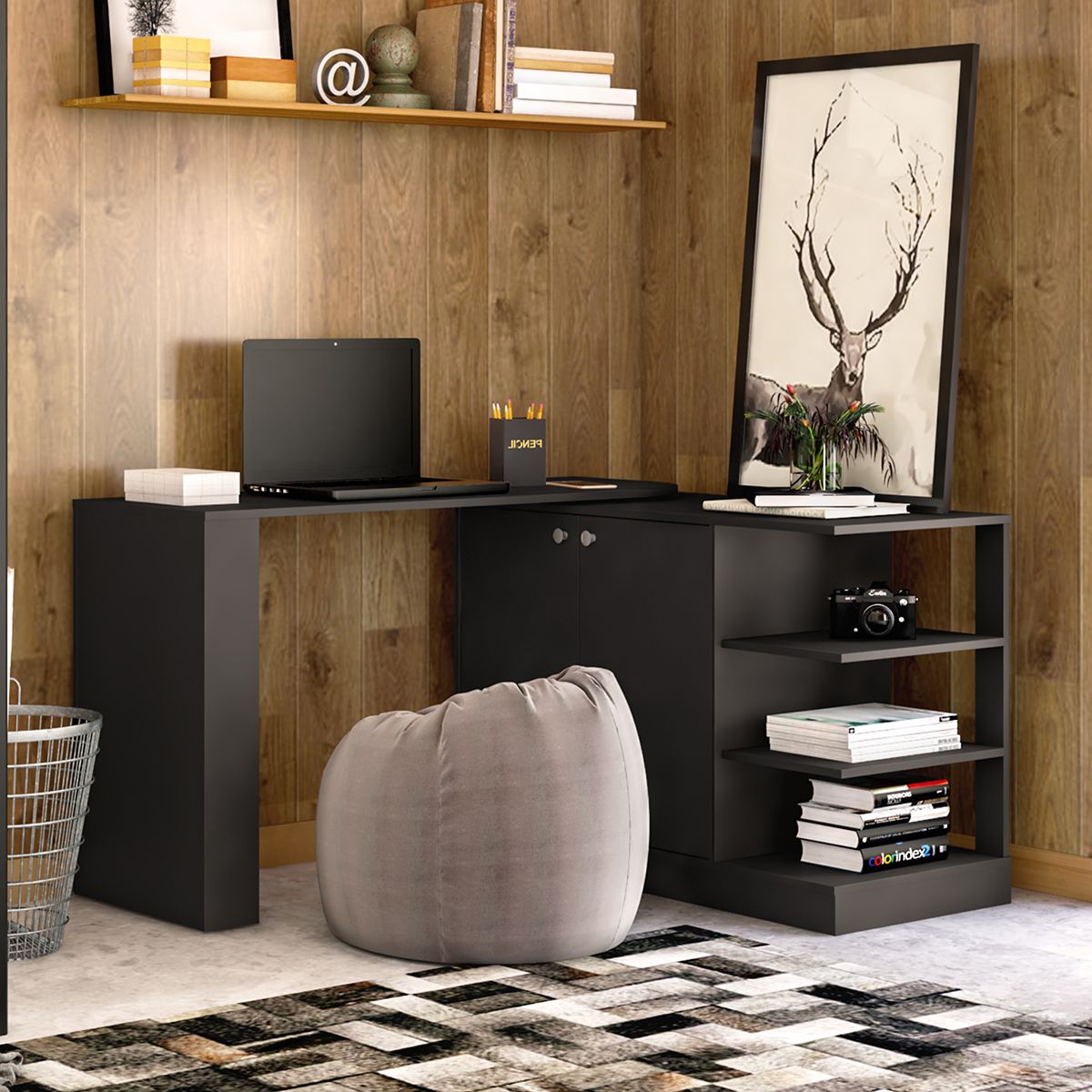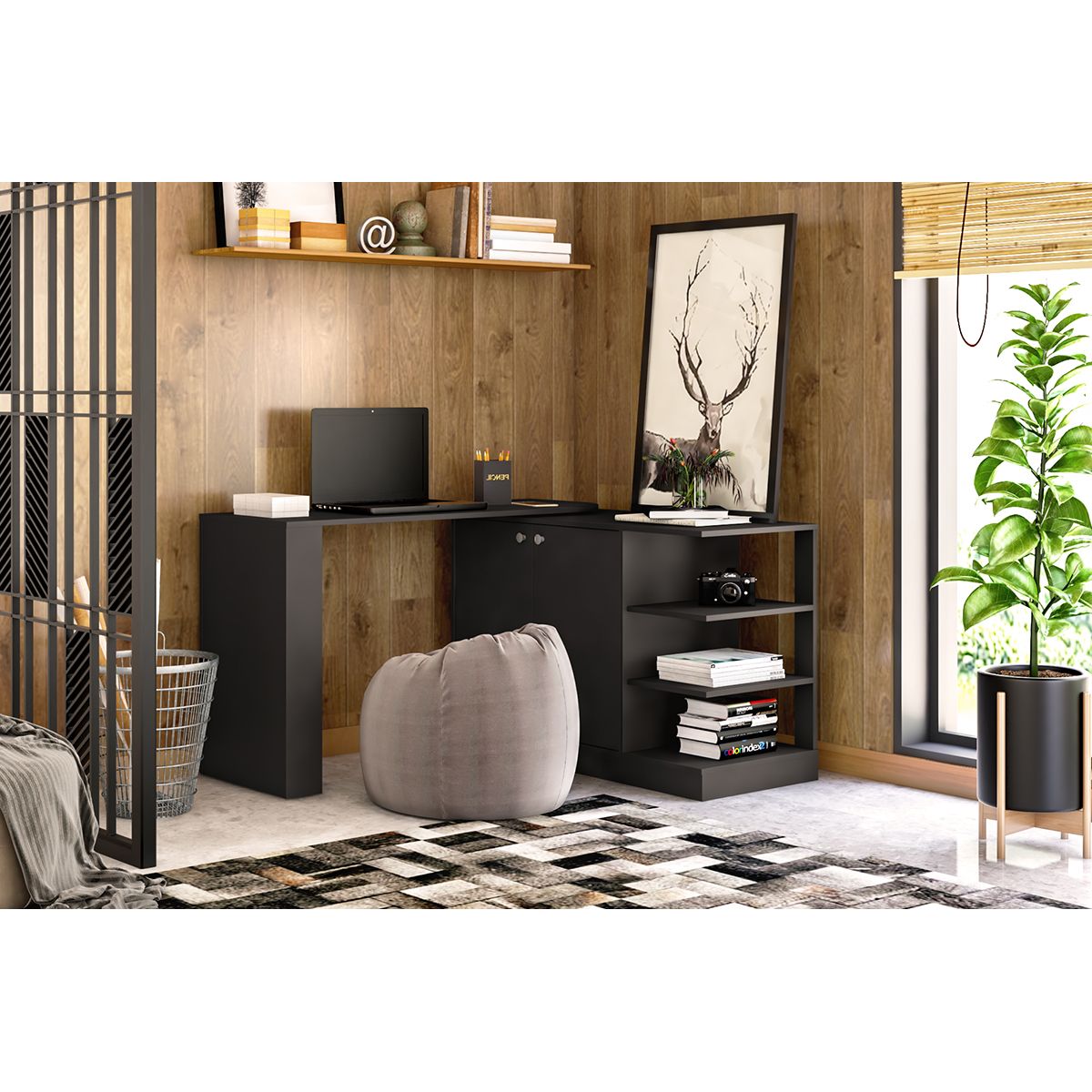 Mesa de trabajo extensible, armario de 2 puertas con estante interior, 3 estantes a la vista y 3 estantes libreros.