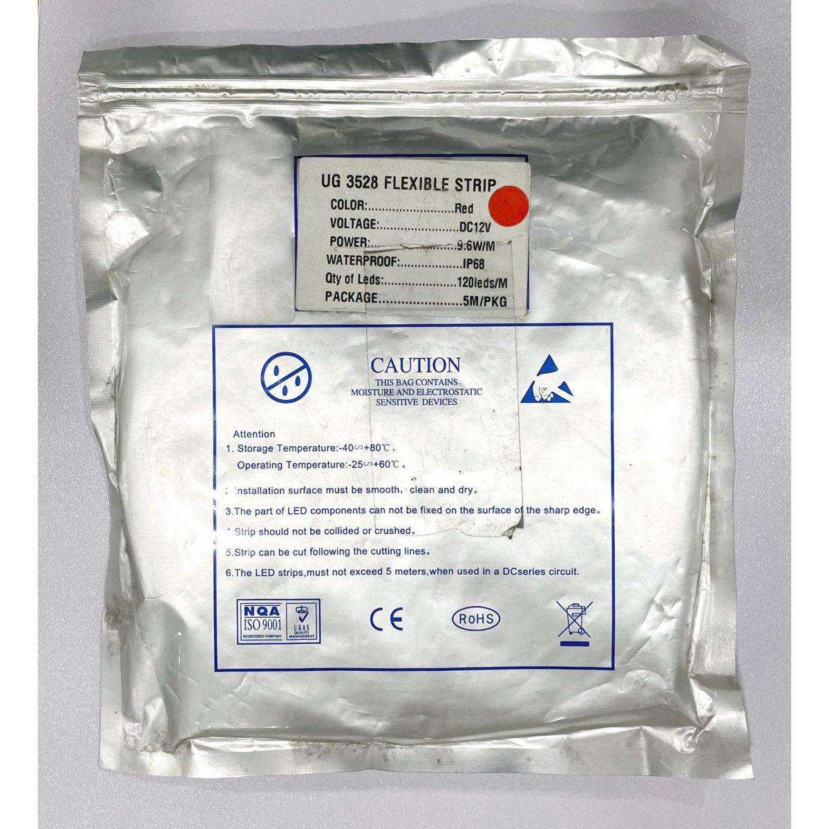 Presentación en rollo de 5 metros con 600 LED's SMD 3528 de alta intensidad que emiten un único color rojo, regulable en intensidad y efectos con un controlador (no incluido)