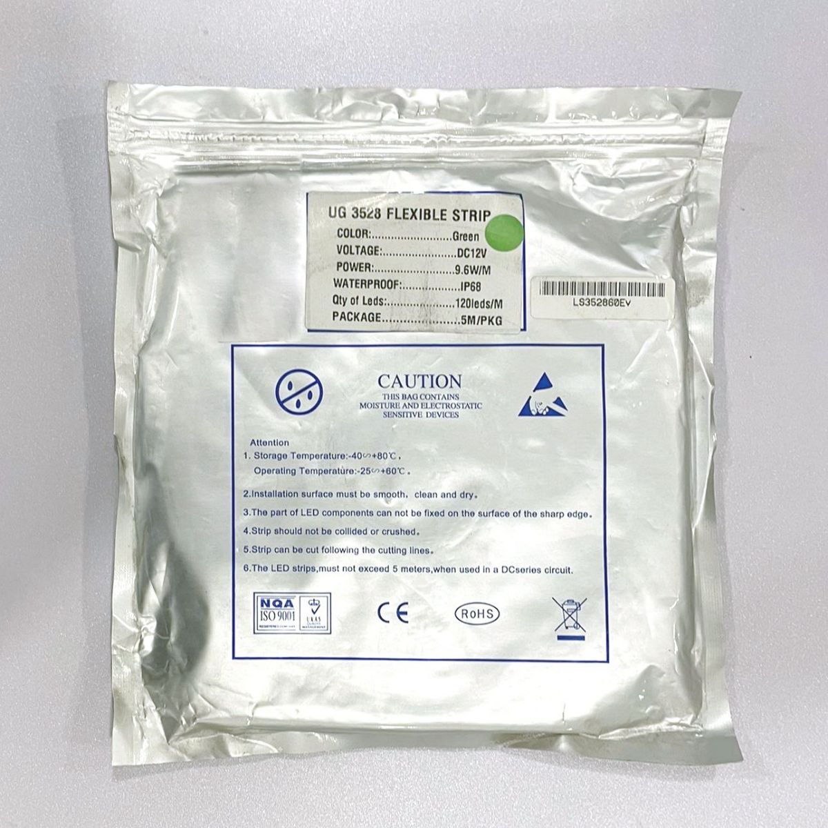 Presentación en rollo de 5 metros con 600 LED's SMD 3528 de alta intensidad que emiten un único color VERDE regulable en intensidad y efectos con un controlador (no incluido)