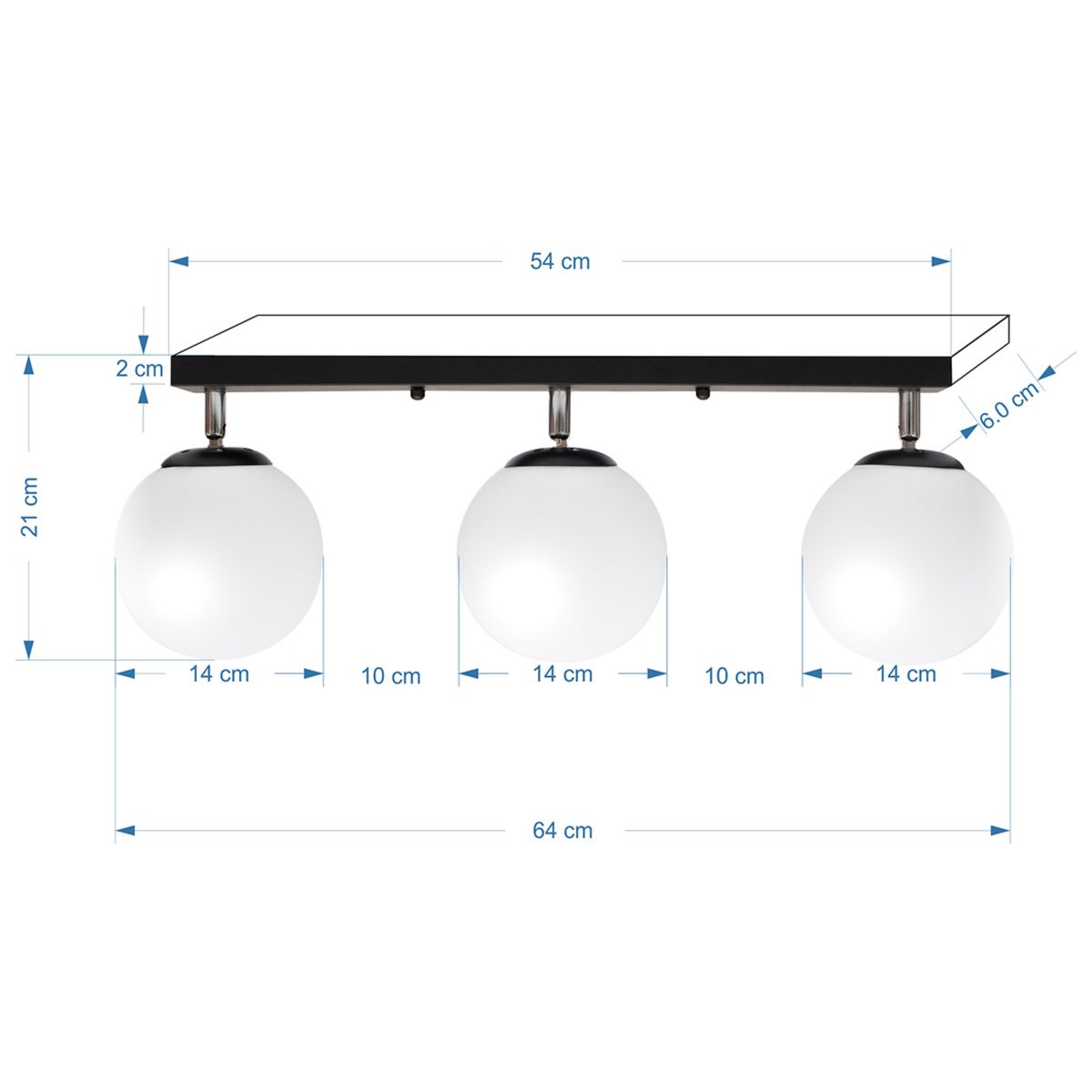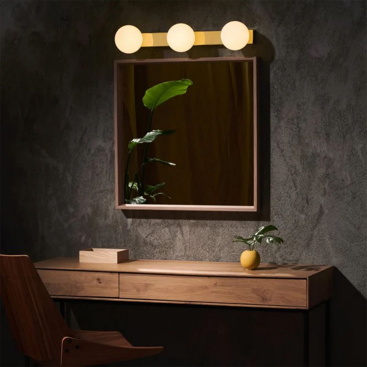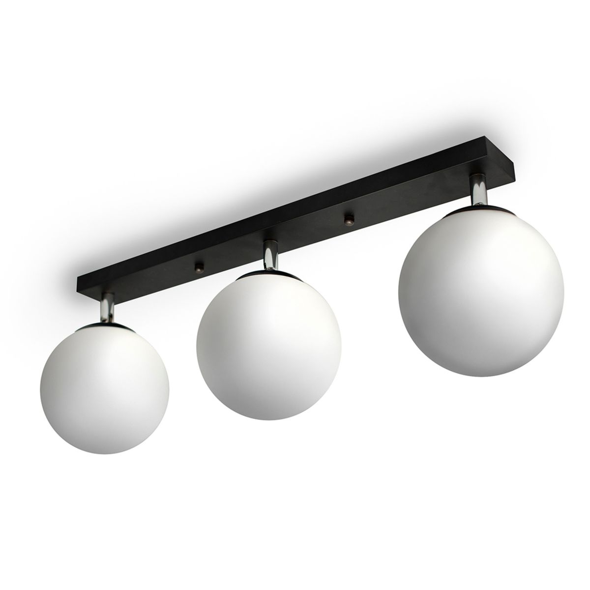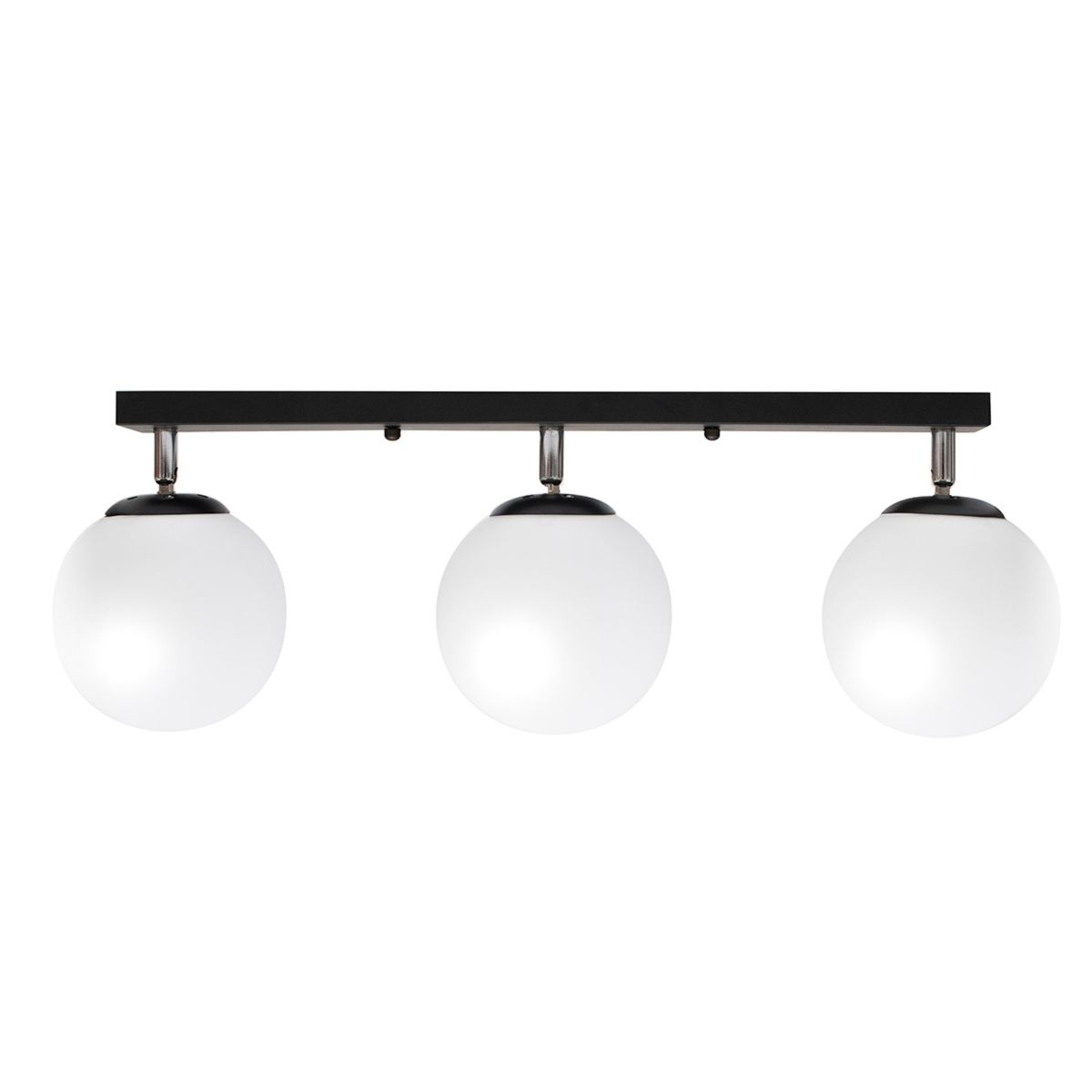 El aplique Esferas de 3 luces, es un modelo regleta perfecto para ubicar sobre espejos, en camerino, baño o tocador. Sus bracitos articulados habilitan a colocarlo tanto en techo como en pared. Fabricado en metal, esmaltado en blanco o negro y globos de vidrio esmerilado.