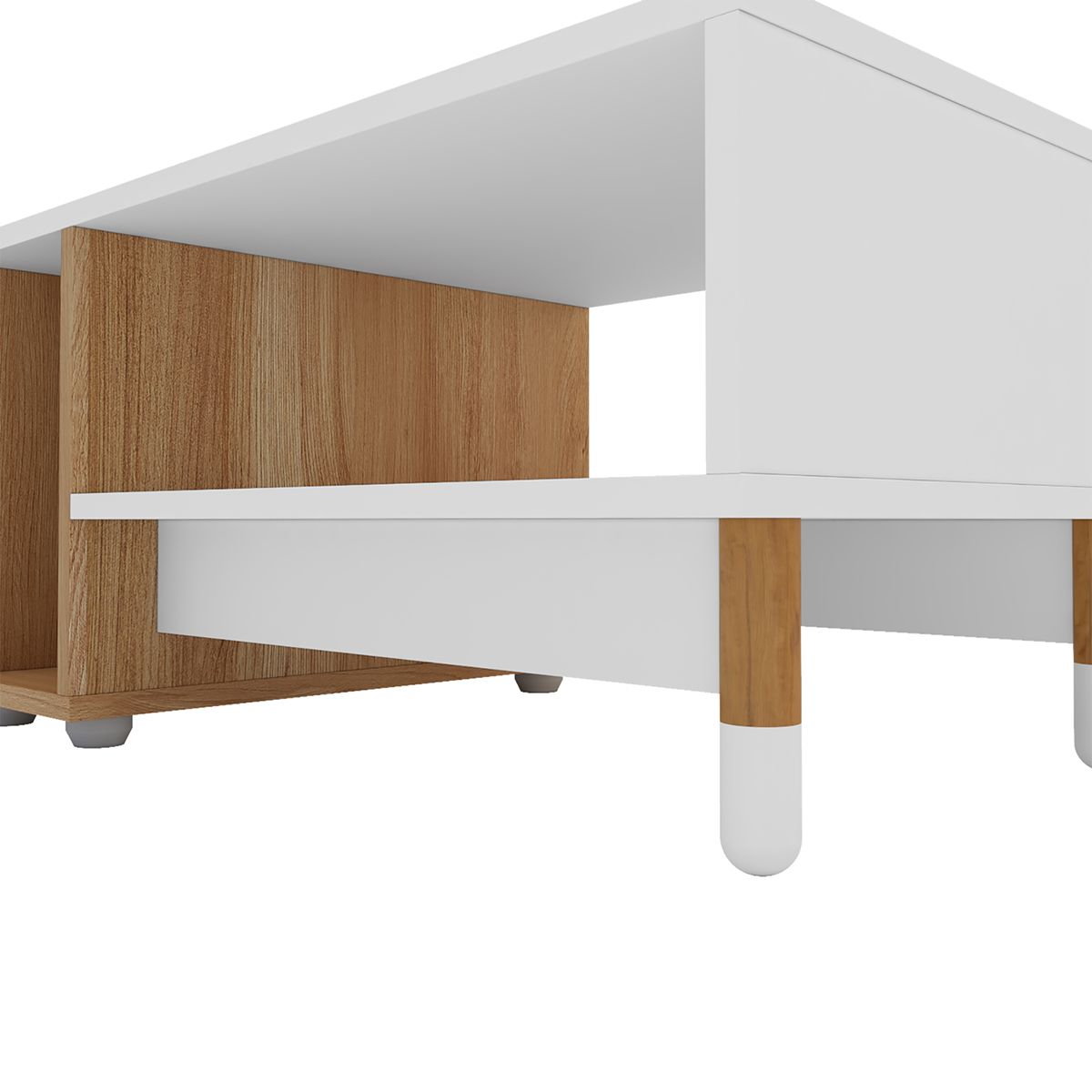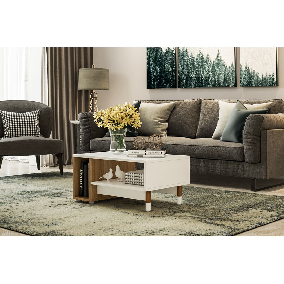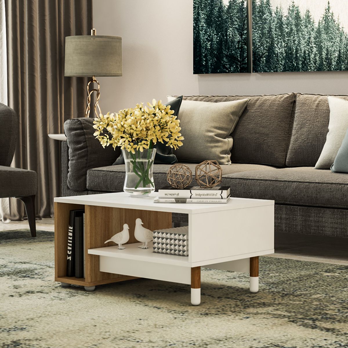 Delicada y funcional, la mesa Nora combina estilo contemporáneo con un toque nórdico. En blanco y madera natural, es perfecta para espacios que buscan calidez y diseño. Con dos estantes, ofrece una solución práctica para organizar libros y objetos, manteniendo el orden en un formato compacto.