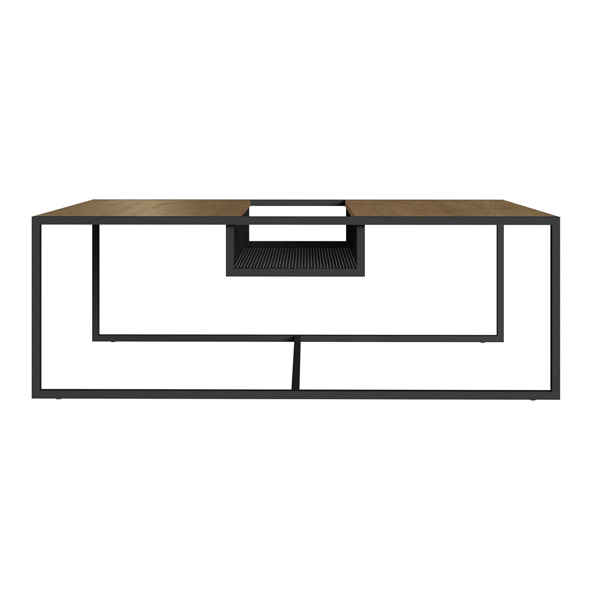 La mesa central Metro combina diseño contemporáneo y funcionalidad. Estilo industrial. Cuenta con un detalle central de rejilla metálica en desnivel, ideal para organizar objetos de uso diario como revistas, controles remotos o libros, manteniendo la superficie despejada y tu espacio siempre en orden. Perfecta para complementar salas modernas con un toque de practicidad.