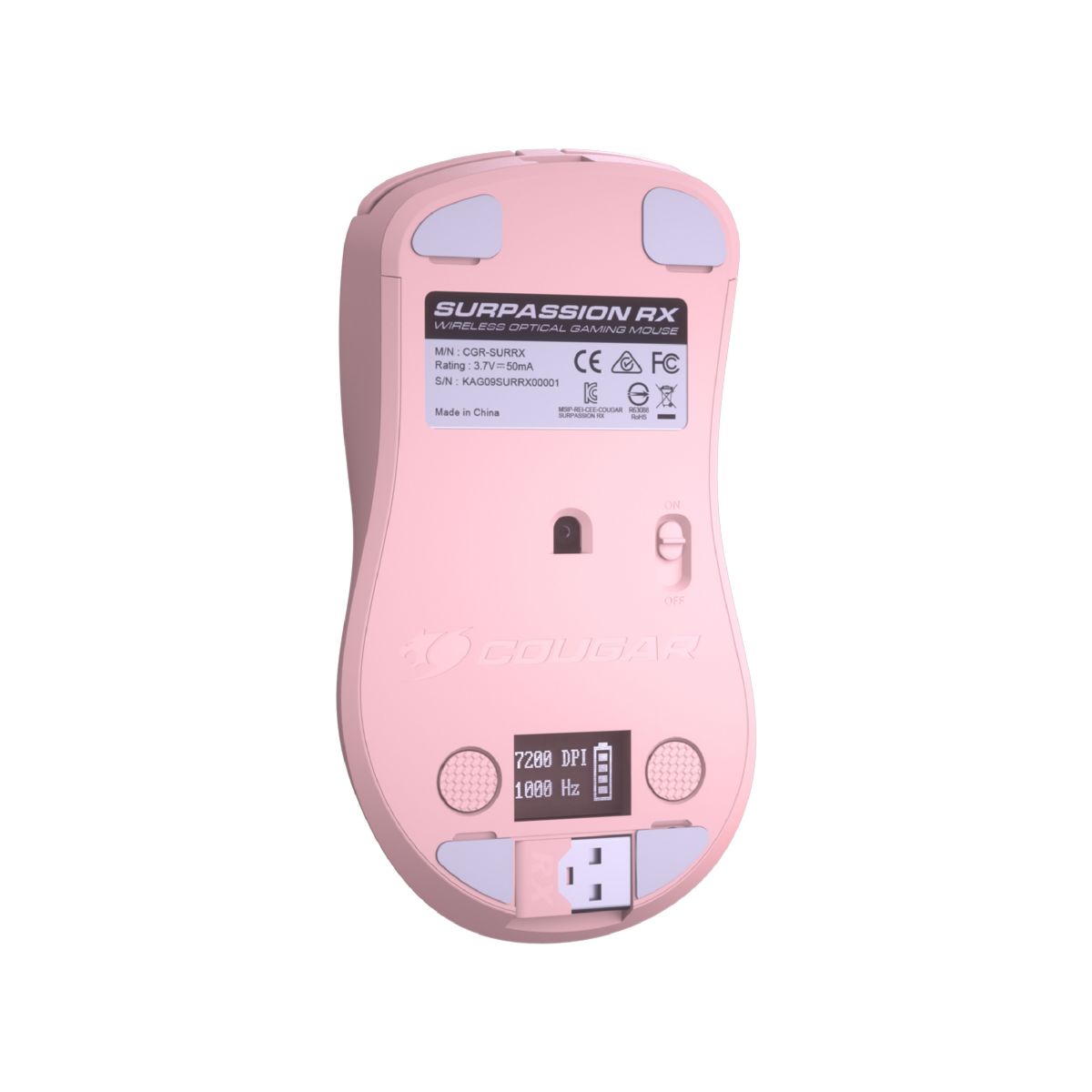 Experimenta la precisión del gaming con el Mouse Cougar Surpassion RX Wireless Pink. Con su sensor óptico PixArt PMW3330 de hasta 7200 DPI ajustables y conectividad inalámbrica 2.4GHz ultra-rápida, dominarás cada partida. Su diseño ergonómico en color rosa y vibrante iluminación RGB lo hacen único. ¡Precisión, estilo y libertad en un solo click!
