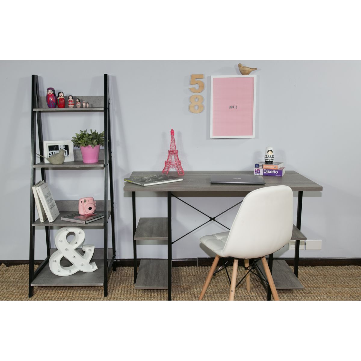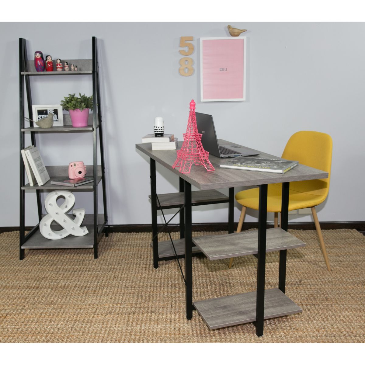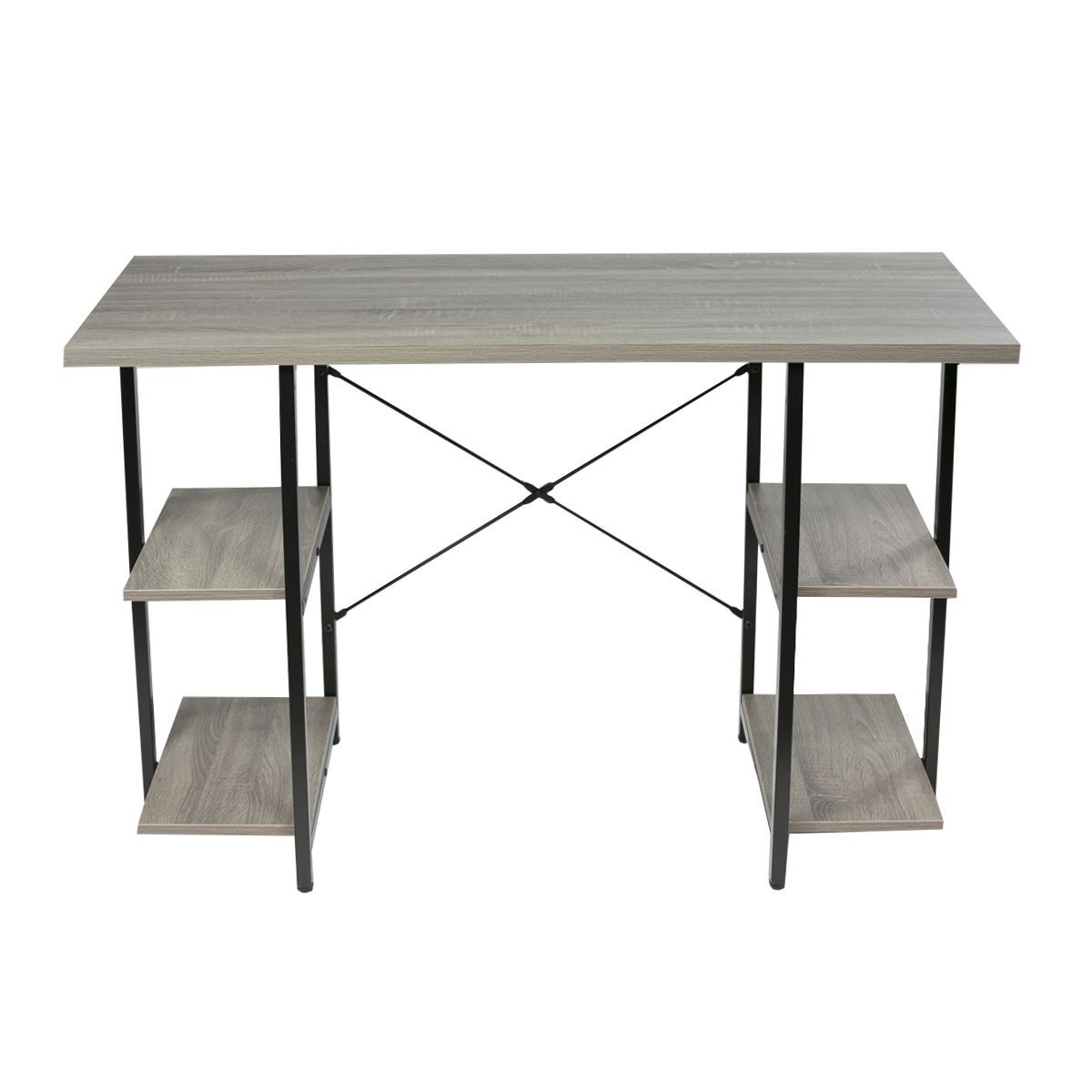 Escritorio para PC, ideal para darle un toque elegante a tus ambientes modernos y luminosos. Su estructura de acero, sus 4 estantes y su tonalidad madera lo convierten en un mueble práctico y funcional que admite combinaciones con diferentes estilos decorativos.