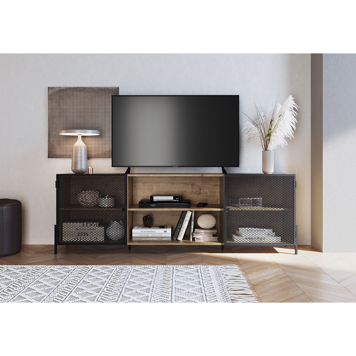 El rack Metro es una pieza imponente y funcional, perfecta para complementar espacios modernos. Con un tamaño de 180 cm, destaca por su diseño elegante y versátil. Sus dos puertas con detalle de rejilla metálica, característico de la línea, aportan un toque distintivo y permiten una sutil transparencia que brinda privacidad sin perder estilo. Incluye un estante central abierto, ideal para dispositivos electrónicos o elementos decorativos, y estantes internos para organizar objetos de uso diario. Este rack combina practicidad y diseño, siendo una solución elegante para mantener el orden en cualquier ambiente.