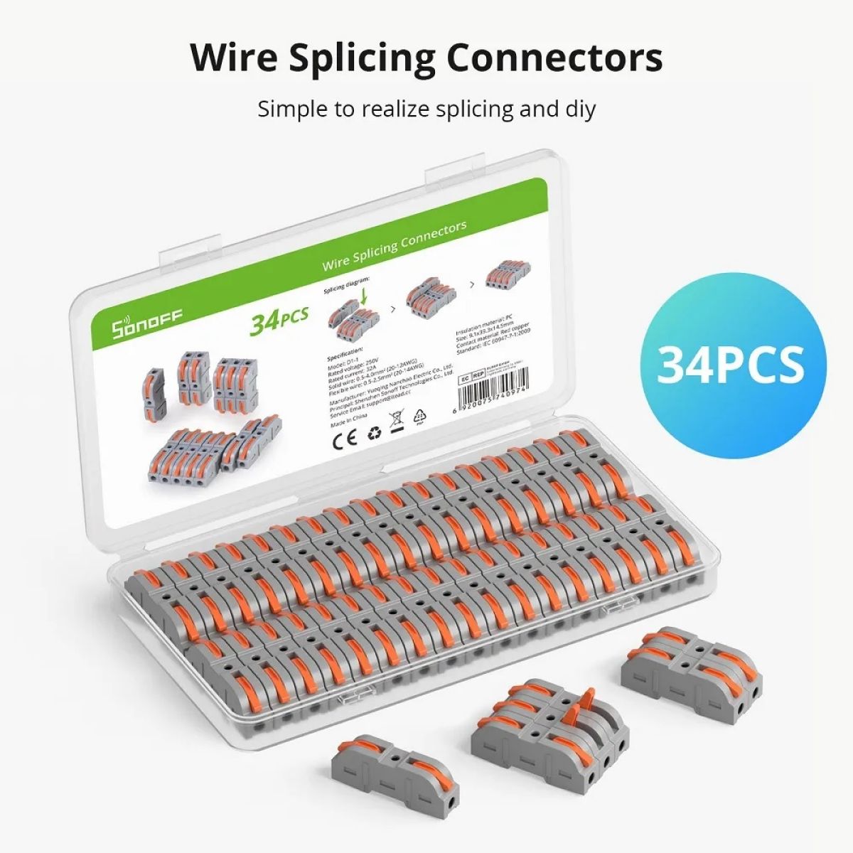 Fácil de operar - En lugar de la cinta aislante tradicional y los conectores a tope eléctricos de tipo giratorio. No necesita más herramientas para conectar cables, simplemente empuje la manija naranja a 90 °, inserte el cable y cierre el interruptor. Sin enrollar cinta, ahorra mucho tiempo y esfuerzo.