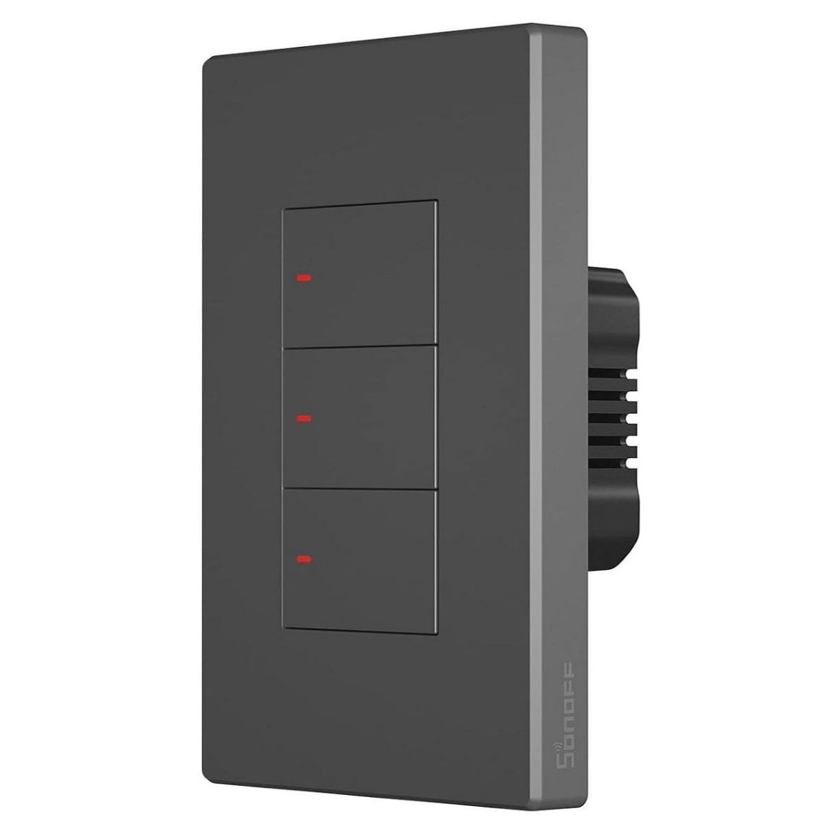 El Interruptor de Pared Sonoff M5-120 es un interruptor inteligente con 3 botones físicos, ideal para gestionar de manera eficiente tus dispositivos en el hogar inteligente.