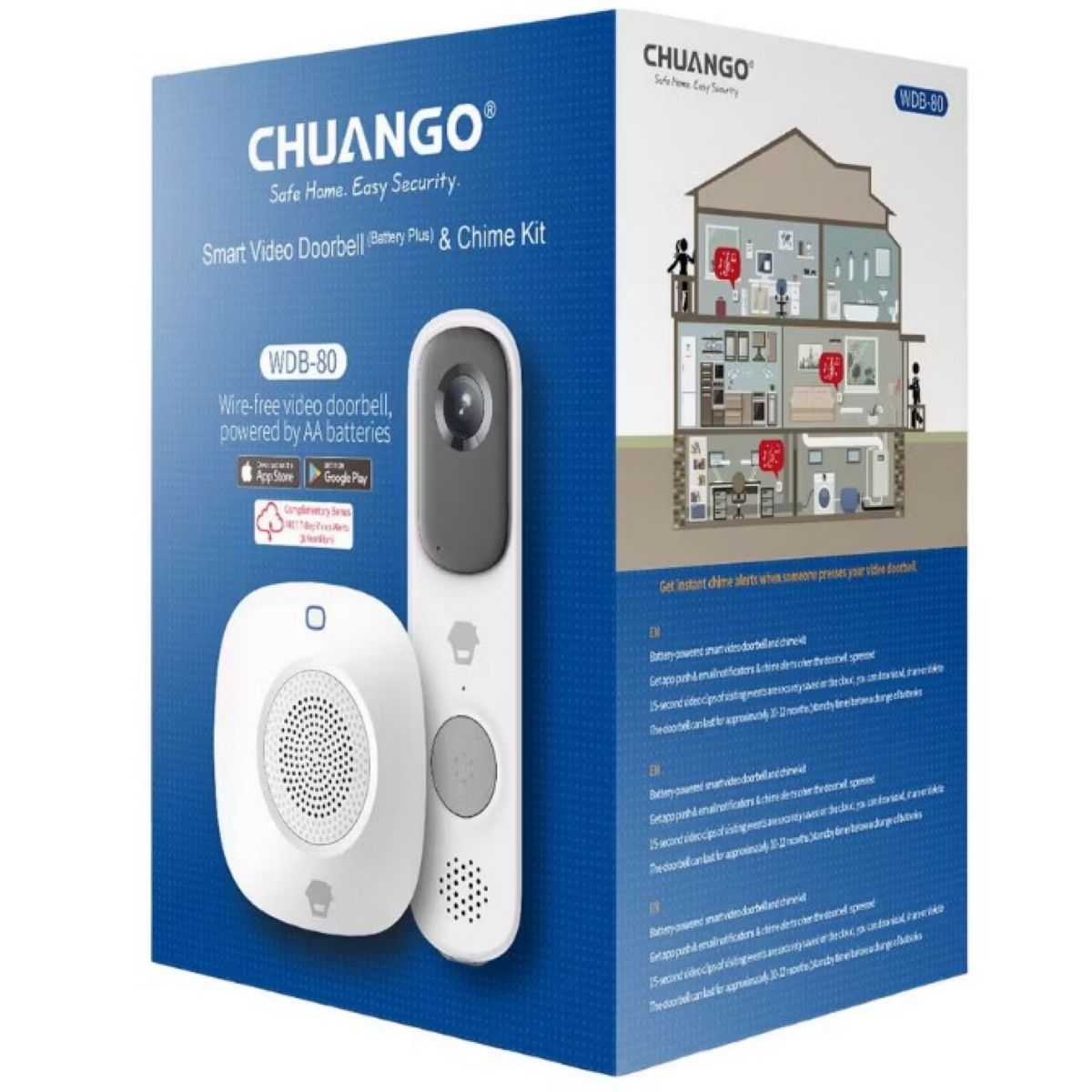El **Video Portero WiFi Chuango** es una adición moderna y eficiente a la línea de seguridad para el hogar. Diseñado para uso exterior, este video portero completamente inalámbrico es fácil de instalar y ofrece una excelente funcionalidad. Con un diseño práctico y sencillo, el timbre interior solo necesita estar conectado a un tomacorriente, mientras que el dispositivo exterior funciona con 3 baterías AA, las cuales tienen una vida útil de entre 10 y 12 meses* bajo condiciones normales de uso.
