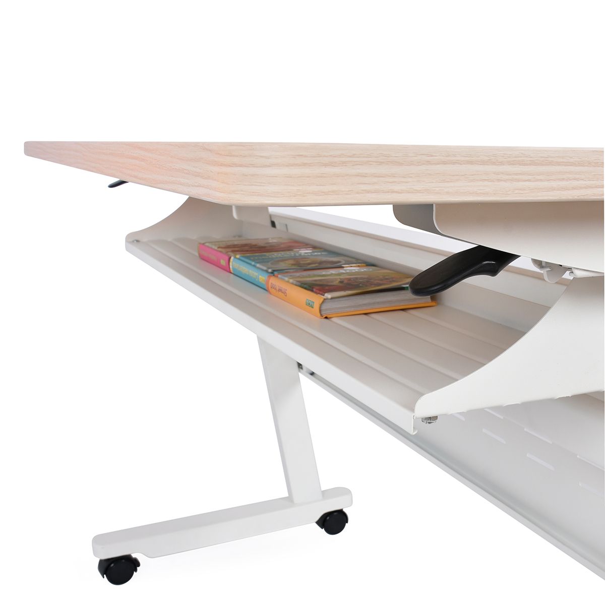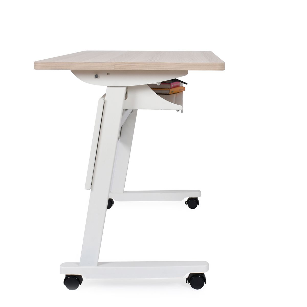 El Escritorio Flex I es una pieza de estructura firme con estética de vanguardia y altamente funcional. Su principal característica es ser plegable por lo que se puede guardar cuando no se está utilizando. Además posee ruedas y freno en la base, lo que permite traslado ultra suave sin esfuerzo y estabilidad en posición de trabajo. Con estante para guardado de útiles o pertenencias y frente cubre piernas. Es ideal para quienes necesitan definir áreas de trabajo por periodos de tiempo variables. Desde home office hasta aulas, espacios cowork, multifunción, salas de reunión o conferencias. Posee amplia superficie de apoyo y diseño ergonómico.