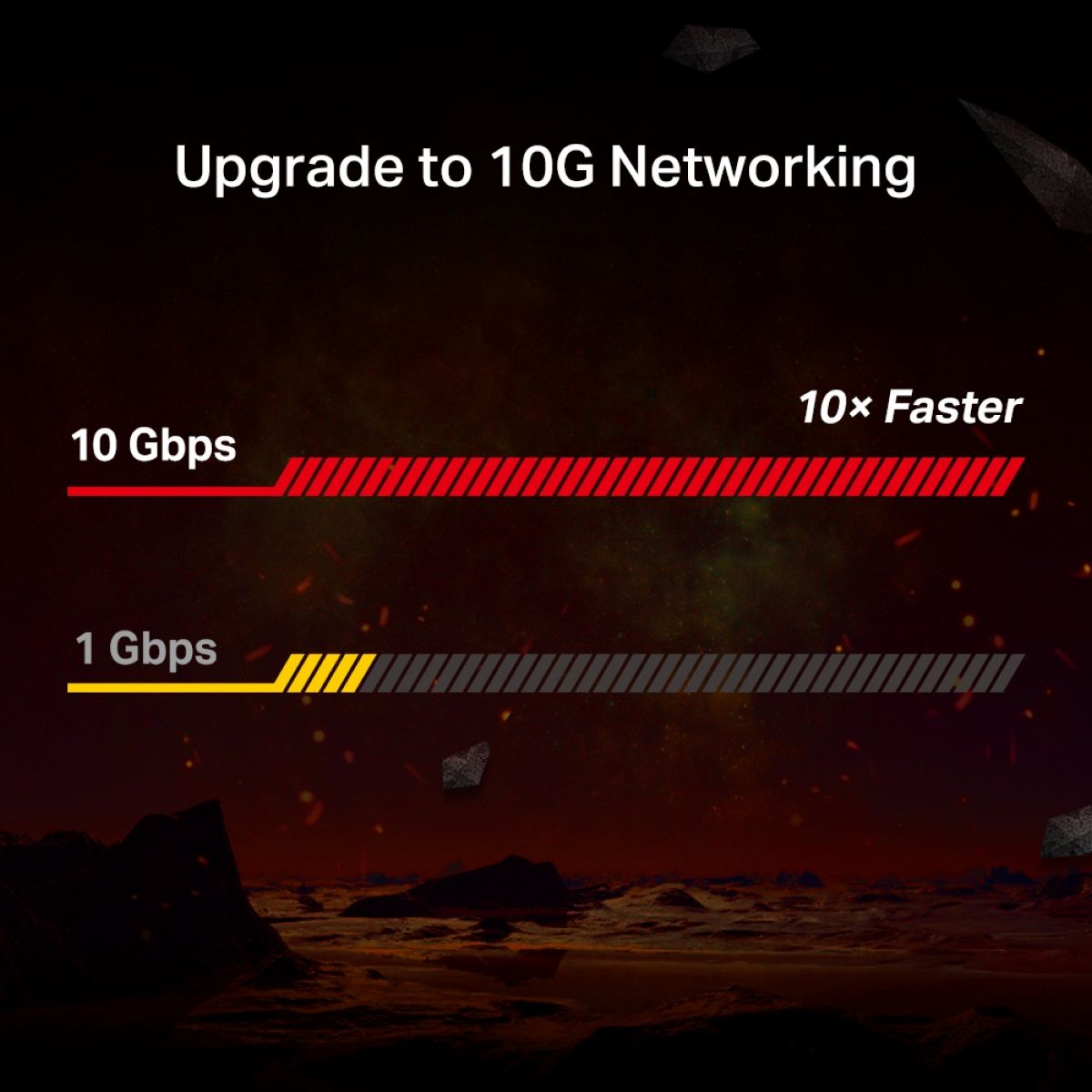 Conexión en red de 10 Gbps: Combinado con la última tecnología 10GBase-T, TX401 ofrece velocidades extremas de hasta 10 Gbps, que es 10 veces más rápido que los adaptadores Gigabit típicos, garantizando transmisiones de datos fluidas tanto para el acceso a Internet como para las transmisiones de datos locales. †