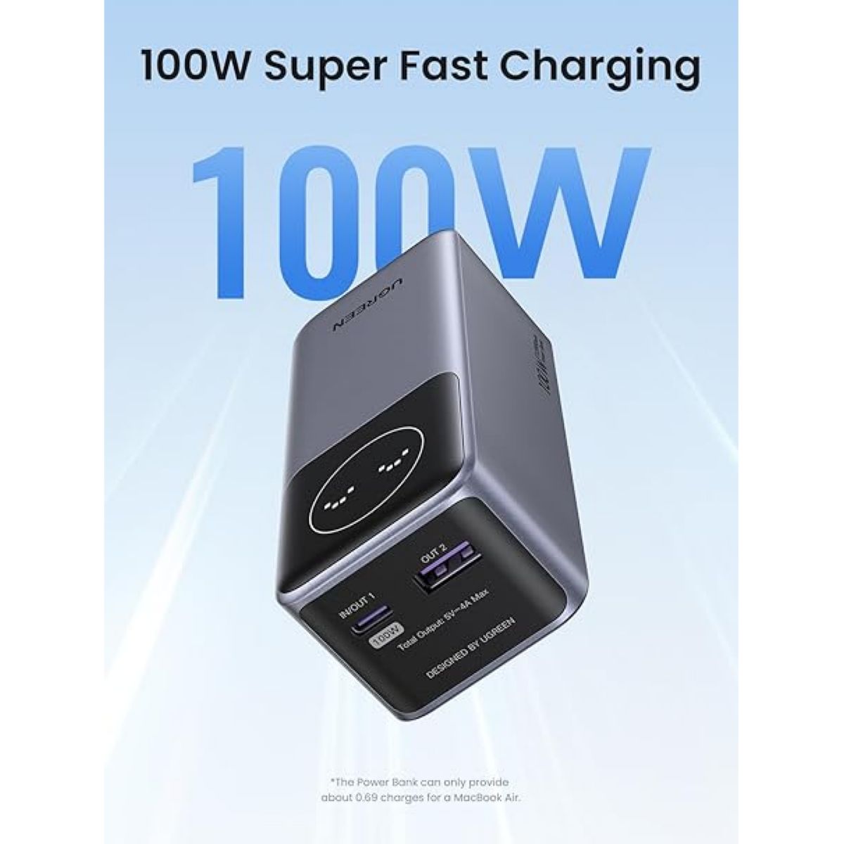 Carga | Salida ultrarrápida de 100 W:carga rápidamente tabletas y teléfonos inteligentes a sus velocidades máximas, aumentando un iPad Pro M4 al 40% en solo 30 minutos o aumentando un iPhone 15 hasta un 60% |