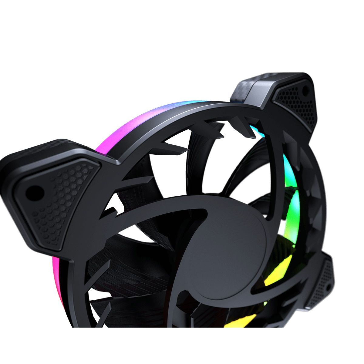 Con los enchufes 5V-ARGB incorporados y 18 perlas de lámpara ARGB, el ventilador de enfriamiento COUGAR VORTEX VK120 proporciona varios y coloridos efectos de iluminación desde el frente, los lados interior y exterior a través del anillo de luz al mismo tiempo. Debido a esto, los jugadores pueden disfrutar de maravillosos efectos de iluminación desde cualquier ángulo del ventilador.