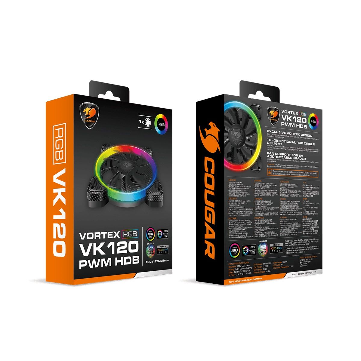 El ventilador de enfriamiento de alto rendimiento COUGAR VORTEX VK120 proporciona varios y coloridos efectos de iluminación ARGB para su chasis. Además, mejora el efecto de enfriamiento de manera eficiente. Es absolutamente una parte indispensable del sistema de PC para juegos.